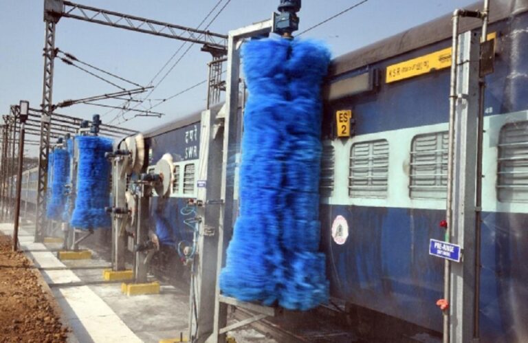 - Pre-Wash/Soak: High-pressure water jets and sensors detect the train’s entry, applying water to loosen surface dirt and grime.